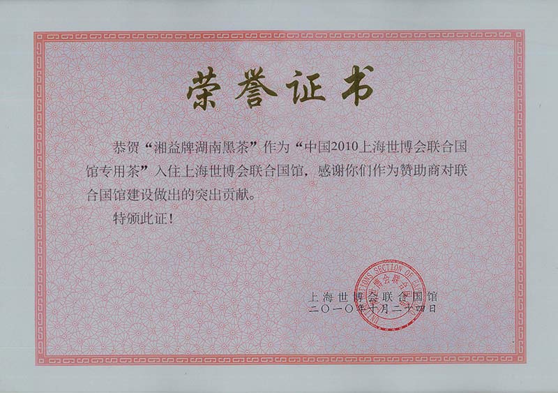 上海世博會榮譽證書