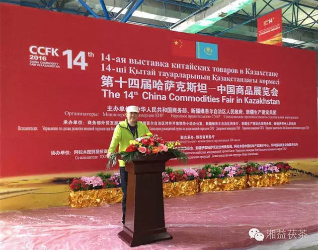 第十四屆哈薩克斯坦——中國商品展覽會于2016年5月20日在哈薩克斯坦阿拉木圖市隆重開幕。為積極落實(shí)中央關(guān)于加快推進(jìn)絲綢之路經(jīng)濟(jì)帶建設(shè),加大企業(yè)開拓中亞新興茶葉市場,提升湘益茯茶在中亞各國的品牌優(yōu)勢,新疆新益茶業(yè)有限責(zé)任公司做為兵團(tuán)代表之一向國外客商及消費(fèi)者展示了湘益牌系列茯磚茶產(chǎn)品并受到一致好評。