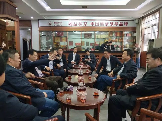 陳副省長一行參觀了公司的生產(chǎn)車間、金花酵庫、院士專家工作站,詳細(xì)了解公司的制茶工藝、歷史淵源以及茯磚茶功效等。在參觀過程中,陳副省長對公司現(xiàn)代化的車間、先進(jìn)的設(shè)備和技術(shù)表示了高度肯定,對湘益茯茶表現(xiàn)出濃厚的興趣。在湘益茯茶體驗(yàn)館里,先后品飲了原料等級、制作年份不同的四種茶品,對湯色橙紅明亮、香氣純正、菌花香濃郁、滋味醇和的湘益茯茶稱贊不已。