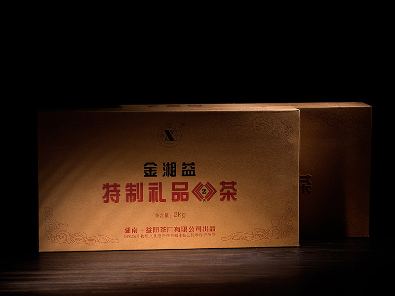 2002年,我公司通過改進生產(chǎn)工藝和技術(shù)設備,研制開發(fā)了“金湘益”特制禮品茯茶。該產(chǎn)品采用優(yōu)質(zhì)黑毛茶為原料,科學精制而成,具有形美、質(zhì)佳、味香、金花普茂、滋味醇和的特點。