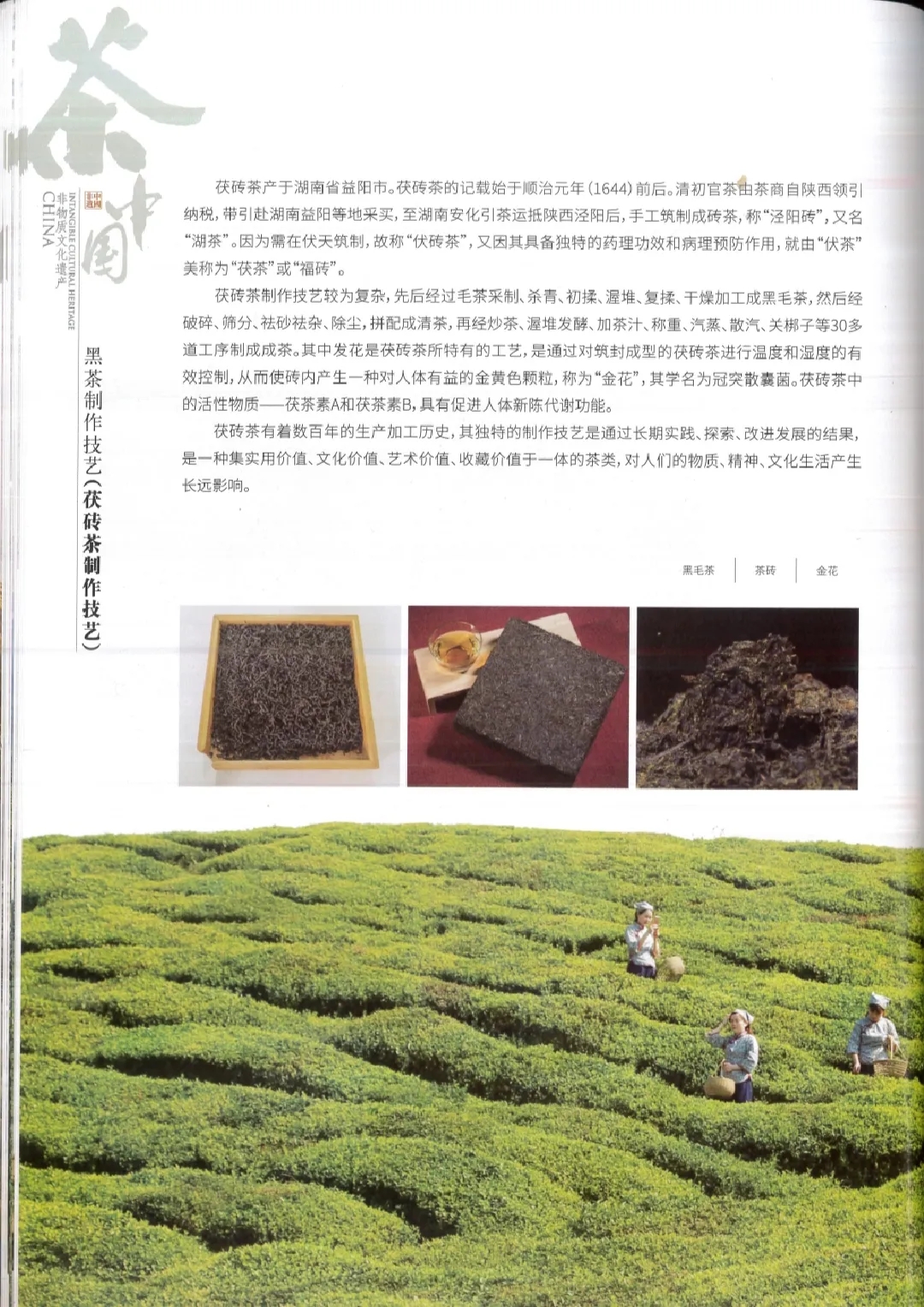 11月29日晚,我國(guó)申報(bào)的“中國(guó)傳統(tǒng)制茶技藝及其相關(guān)習(xí)俗”在摩洛哥拉巴特召開(kāi)的聯(lián)合國(guó)教科文組織保護(hù)非物質(zhì)文化遺產(chǎn)政府間委員會(huì)第17屆常會(huì)上通過(guò)評(píng)審,列入聯(lián)合國(guó)教科文組織人類非物質(zhì)文化遺產(chǎn)代表作名錄。至此,我國(guó)共有43個(gè)項(xiàng)目列入聯(lián)合國(guó)教科文組織非物質(zhì)文化遺產(chǎn)名錄、名冊(cè),居世界第一。益陽(yáng)茯磚茶制作技藝也被列入其中。 “中國(guó)傳統(tǒng)制茶技藝及其相關(guān)習(xí)俗”是有關(guān)茶園管理、茶葉采摘、茶的手工制作,以及茶的飲用和分享的知識(shí)、技藝和實(shí)踐。自古以來(lái),中國(guó)人就開(kāi)始種茶、采茶、制茶和飲茶。制茶師根據(jù)當(dāng)?shù)仫L(fēng)土,運(yùn)用殺青、悶黃、渥堆、萎凋、做青、發(fā)酵、窨制等核心技藝,發(fā)展出綠茶、黃茶、黑茶、白茶、烏龍茶、紅茶六大茶類及花茶等再加工茶,2000多種茶品,供人飲用與分享,并由此形成了不同的習(xí)俗,世代傳承,至今貫穿于中國(guó)人的日常生活、儀式和節(jié)慶活動(dòng)中。