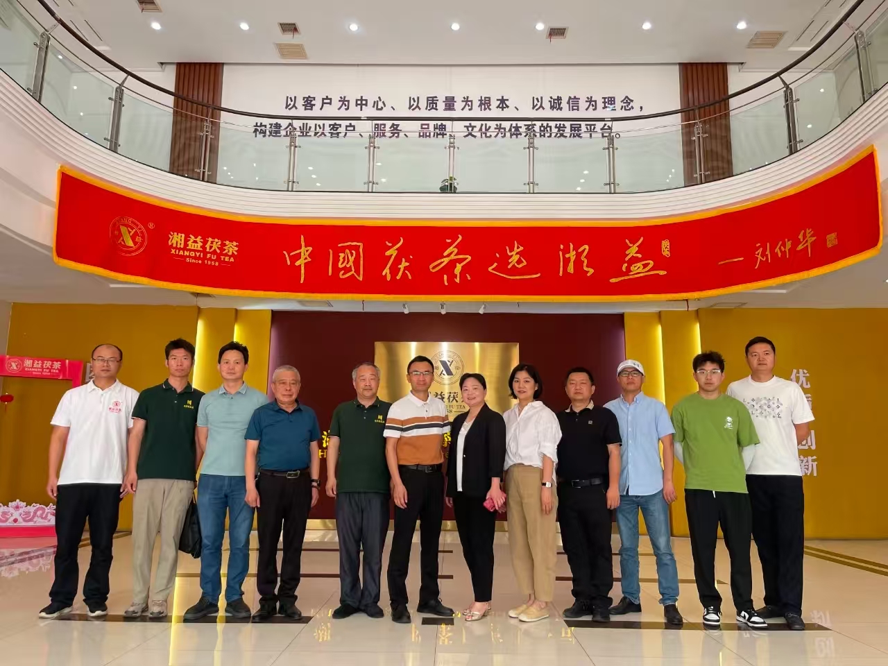 來(lái)訪嘉賓深入生產(chǎn)車(chē)間,實(shí)地參觀了篩分車(chē)間、壓制車(chē)間與金花酵庫(kù)。姚堅(jiān)主席全程陪同下,并憑借其深厚的行業(yè)知識(shí),深入講解從原料精選到茯磚茶“發(fā)花”等核心工藝要點(diǎn),讓來(lái)賓們對(duì)茯磚茶嚴(yán)苛的制作工序有了更清晰的認(rèn)識(shí)。在湘益茯茶博物館,來(lái)賓們通過(guò)詳實(shí)的文字、圖片以及歷史實(shí)物,感受茯磚茶制作技藝傳承數(shù)百年的深厚底蘊(yùn),深入了解益陽(yáng)茶廠六十余載守護(hù)非遺技藝的堅(jiān)守與突破。