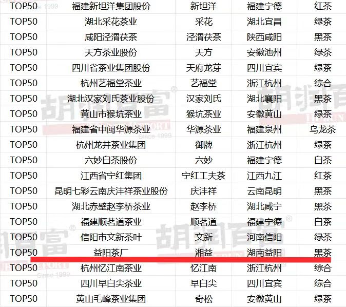 5月,胡潤研究院發(fā)布《2025胡潤中國茶葉領(lǐng)域典范企業(yè)榜》,益陽茶廠有限公司憑借其深厚的行業(yè)積淀、卓越的品牌價(jià)值及持續(xù)創(chuàng)新力再度躋身榜單,這是繼去年登榜后,益陽茶廠又一次獲此殊榮,進(jìn)一步鞏固了其在中國黑茶領(lǐng)域的龍頭地位及行業(yè)標(biāo)桿形象。