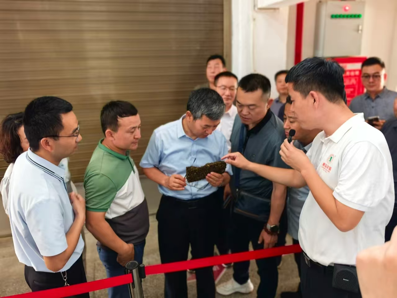 調(diào)研組實地參觀了益陽茶廠篩分車間、壓制車間及核心工藝區(qū)“金花酵庫”,并通過有關歷史文獻與實物展陳等,詳細了解了茯磚茶從原料篩選到發(fā)花干燥的工藝流程,了解了益陽茶廠自1958年建廠以來通過“一片茶守護邊疆”所展現(xiàn)的使命擔當,連續(xù)67年向新疆、青海、甘肅等地區(qū)無間斷調(diào)撥茯磚茶超60萬噸,依托萬噸級原料儲備和智能化生產(chǎn)線等,構建起邊疆民生茶長期穩(wěn)定供應體系。