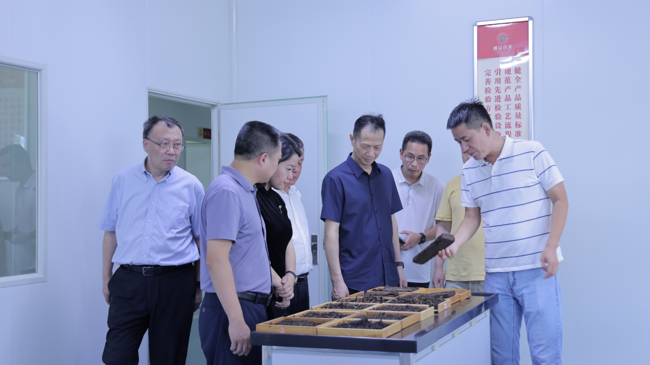在益陽(yáng)茶廠黨委書(shū)記、常務(wù)副總經(jīng)理徐迪軍,副總經(jīng)理姚永軍等的引導(dǎo)下,調(diào)研組實(shí)地考察了茯磚茶核心生產(chǎn)區(qū)域,依次參觀了篩分車間、壓制車間、金花酵庫(kù)(烘房)以及湖南農(nóng)業(yè)大學(xué)博士科研工作站。林鐘樂(lè)會(huì)長(zhǎng)對(duì)益陽(yáng)茶廠將國(guó)家級(jí)非遺技藝精髓與現(xiàn)代生產(chǎn)標(biāo)準(zhǔn)及設(shè)備相融合的創(chuàng)新實(shí)踐給予了充分肯定。