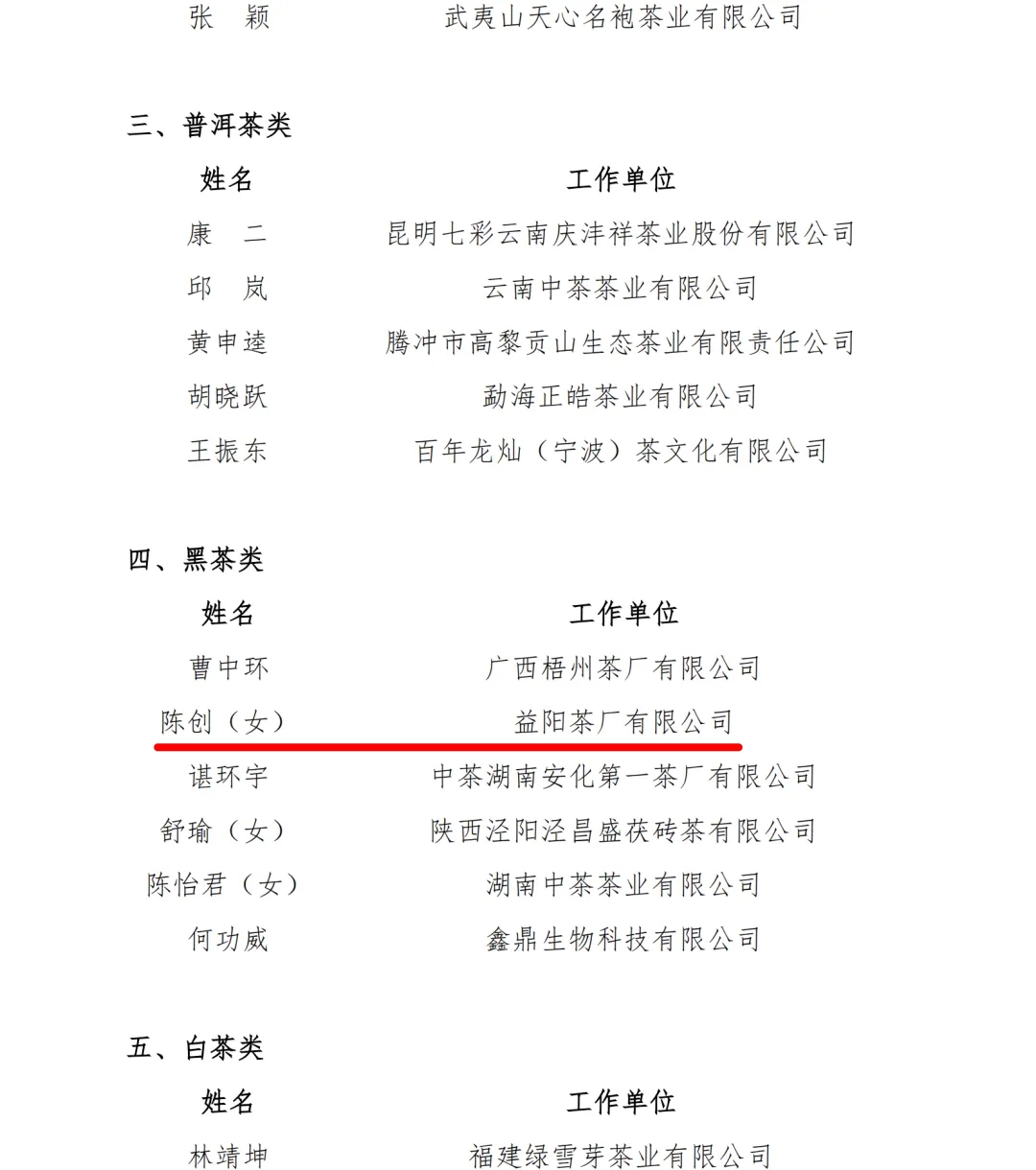 近日中國茶葉流通協(xié)會(huì)公布了2025“國茶人物·制茶大師”第十批調(diào)查結(jié)果及2025“國茶人物·制茶能手”第五批調(diào)查結(jié)果。其中,益陽茶廠有限公司陳創(chuàng)同志獲評“國茶人物·制茶能手”(黑茶類)。