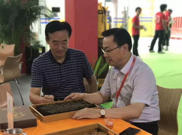 (湖南省代理商熊志偉與劉仲華教授共同品鑒“1kg一品茯茶”)